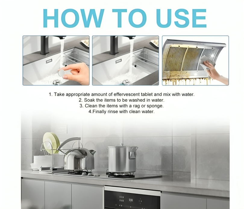 : فقط ضع القرص في ماء دافئ واتركه يعمل دون الحاجة للفرك أو المواد الكيميائية القاسية.