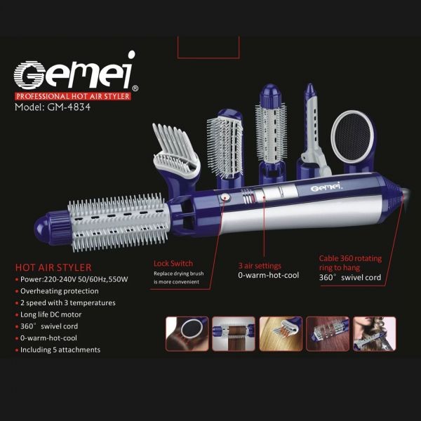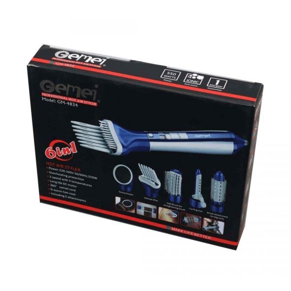 جيمي مصفف شعر احترافي بالهواء الساخن، 6 في 1 مصفف شعر بالهواء الساخن، GM-4834