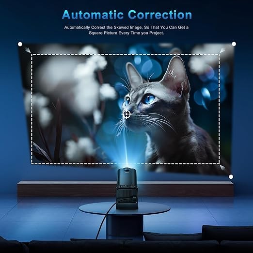 تصحيح الانحراف التلقائي: من خلال التركيز اليدوي وتصحيح الانحراف التلقائي، يمكن إعداد جهاز العرض بسرعة فائقة وبدون قلق في 3 ثوانٍ قبل ضبط أفلامك المفضلة. عملية الإعداد بأكملها سلسة تقريبًا وستحصل على صورة واضحة ومستطيلة في ثوانٍ معدودة.