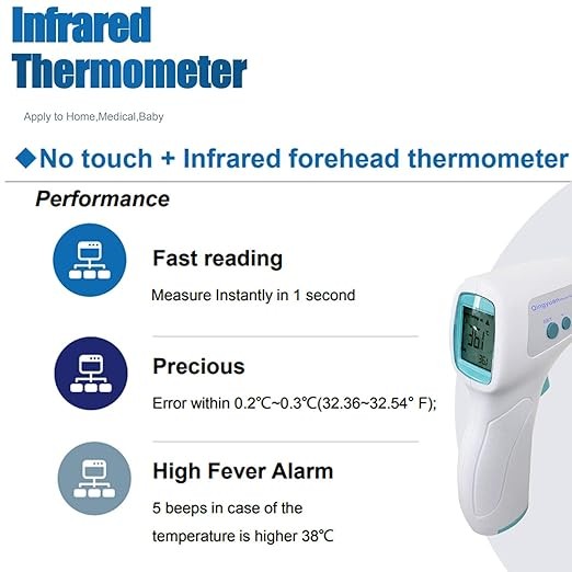 يقوم مقياس الحرارة بقياس درجة الحرارة من الأمام على الفور خلال ثانية واحدة ويحتوي على معايرة ذكية