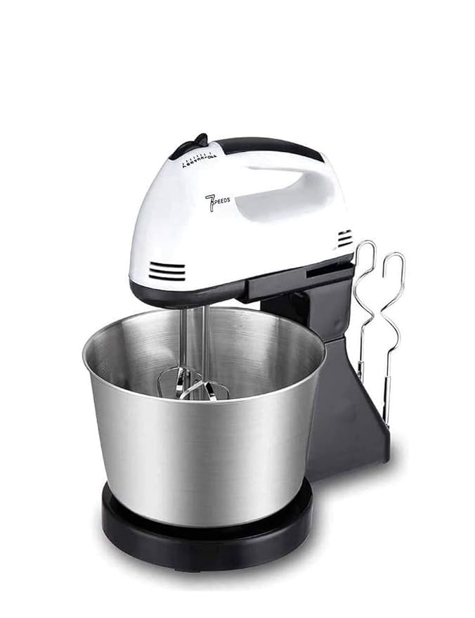 الفولاذ المقاوم للصدأ الخالي من الصدأ وسهل الاستخدام& نظيف.خلاط يدوي مصمم بشكل جميل مع حامل. يأتي مع الملحقات اللازمة للخبز. محرك قوي لخلط سهل. وزن خفيف. يأتي مع 2 مضرب وخطافين للعجين. تفاصيل أخرى المناسبة