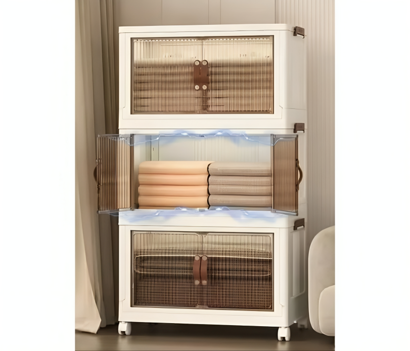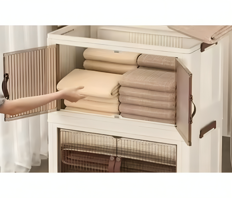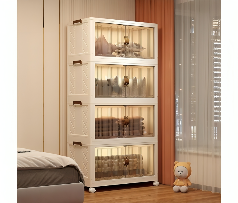 مثالية للمساحات الصغيرة كخزانة ملابس قابلة للطي، وسهلة الإعداد دون الحاجة إلى أدوات معقدة.