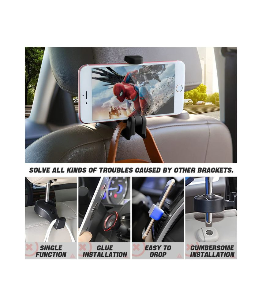 قطعتين من خطاف تعليق خلفي متعدد الوظائف للسيارة 2 في 1 مع حامل هاتف