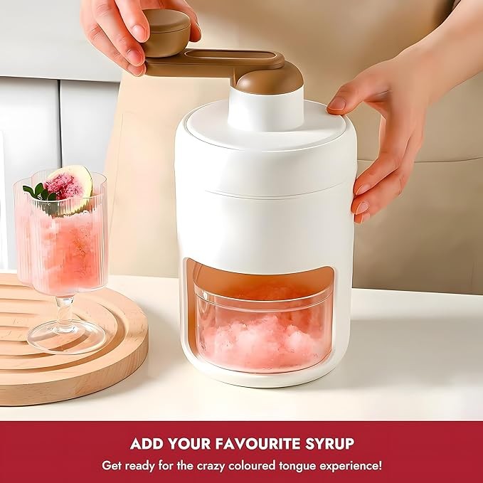 سهل الاستخدام - ما عليك سوى وضع مكعبات الثلج، ثم ثبت الغطاء في مكانه، ثم قم بإدارة المقبض دون عناء. شاهد السحر عندما تتحول المكعبات إلى ملمس ناعم ورقيق، لتصنيع العصير المثالي.
