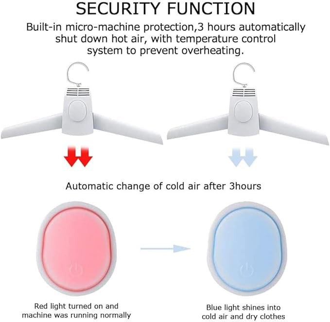 سهل الاستخدام: يتم تشكيل غطاء الهواء داخل الملابس، بحيث يمكن للهواء الساخن أن يتجمع ويدور في الملابس لتجفيف الملابس بسرعة