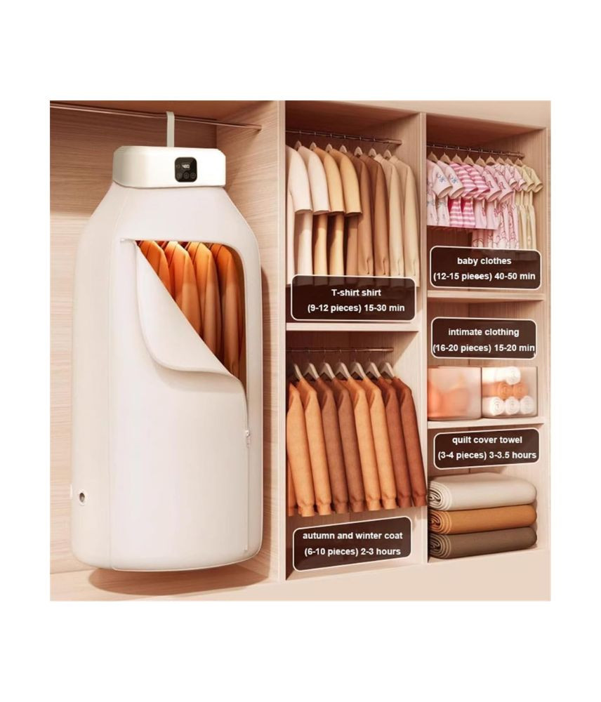 مجفف الملابس المحمول لا يتعلق بالسرعة فحسب؛ إنه يتعلق أيضًا بالنظافة.توفر تقنية الأشعة فوق البنفسجية LED المدمجة طبقة إضافية من التنقية، مما يضمن أن ملابسك ليست جافة فحسب، بل تنشط أيضًا بنظافة لا تشوبها شائبة.هذه الميزة مفيدة بشكل خاص لأولئك الذين يعطون الأولوية للنظافة والنضارة في خزانة ملابسهم.يضمن التشغيل الهادئ للمجفف أن روتين الغسيل الخاص بك ليس مزعجًا، مما يجعله خيارًا مثاليًا لأولئك الذين يقدرون بيئة هادئة..
