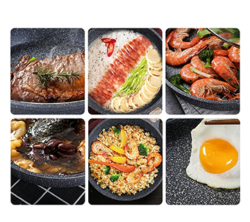 2. **طلاء غير لاصق مقاوم للخدش:** مزودة بطلاء سطحي خاص غير لاصق يسمح بانزلاق الطعام بسهولة دون التصاقه، مما يضمن نتائج الطهي المثالية.