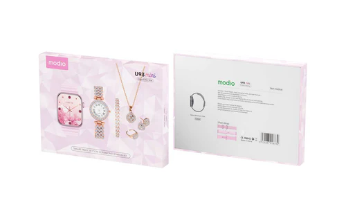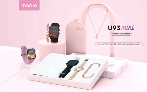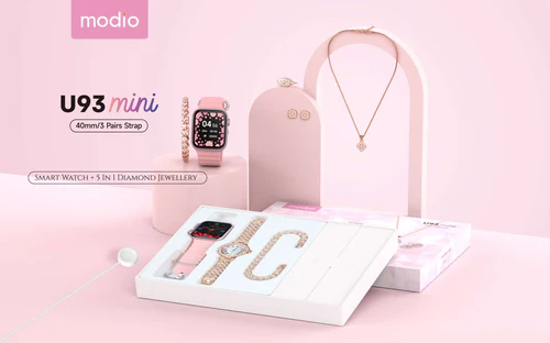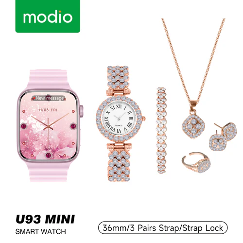 موديو ساعة ذكية U93 ميني 40 ملم مع 3 ازواج سوار وساعة انالوج انيقة مع مجموعة اكسسوارات مجوهرات الماس للنساء والفتيات