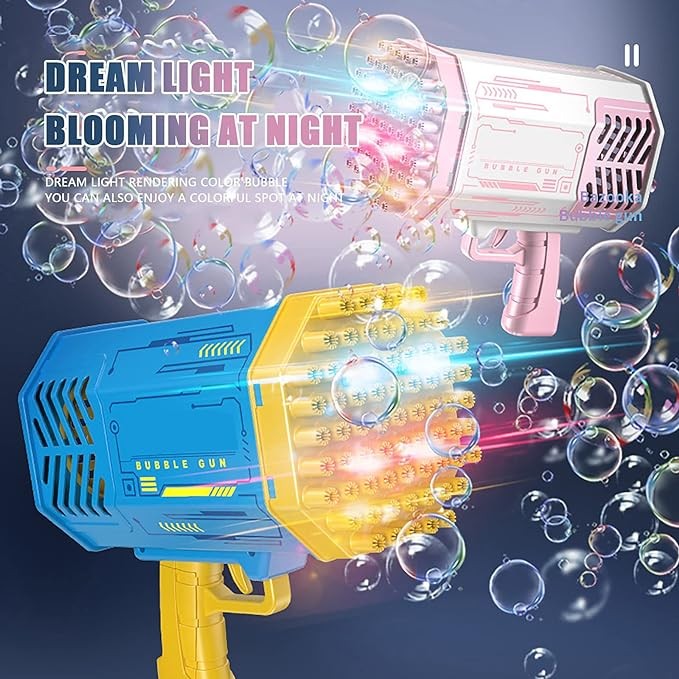 ✿ مع تأثير الأضواء الباردة: يحتوي صانع الفقاعات على مصابيح LED مدمجة. يقدم سطح الفقاعات تأثيرات إضاءة رائعة عند استخدام آلة الفقاعات في الليل، وهو أمر أكثر إبهارًا وجاذبية. يمكن أيضًا استخدام آلة الفقاعات جاتلينج كمروحة صغيرة لجلب نسيم بارد ومريح للأطفال عندما يشعرون بالتعب.
