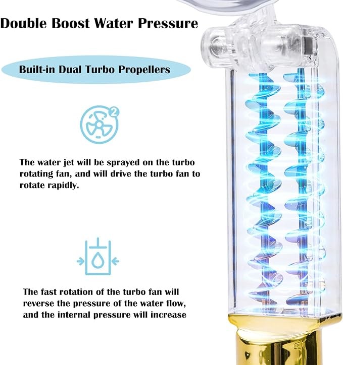 🚿【تصميم فريد من نوعه يعمل بالمروحة】- وضع الماء النفاث المائي القوي، وتدفق المياه المشحون بالشاحن التوربيني، والذي يمكن أن يساعدك على تنظيف فقاعات الصابون والشعر المتبقي في بضع ثوانٍ. كما أنه خيار ممتاز لاستحمام الحيوانات الأليفة. وكل هذا يمكن تحقيقه من خلال زر واحد فقط.