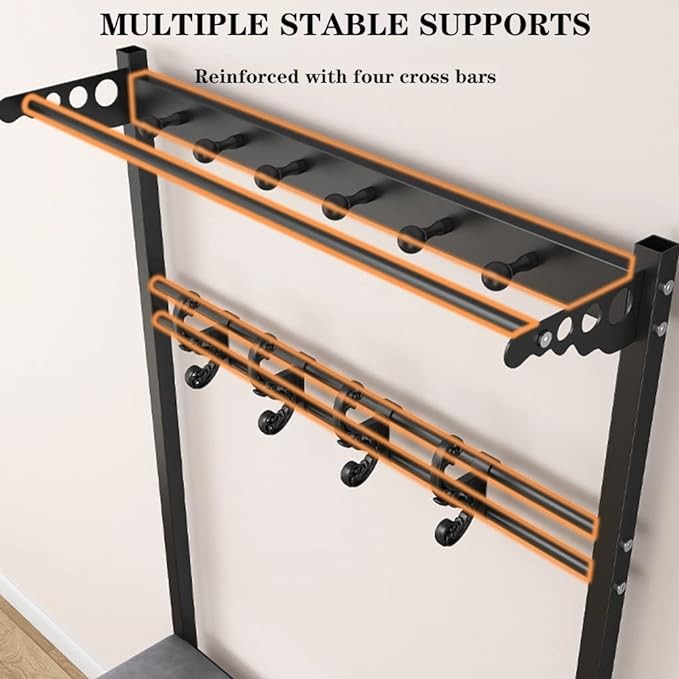 متانة وقوة: يتم تصنيع رف المعاطف باستخدام مواد عالية الجودة وبناء قوي، مما يجعله متينًا وقادرًا على تحمل وزن المعاطف الثقيلة دون الانهيار.
