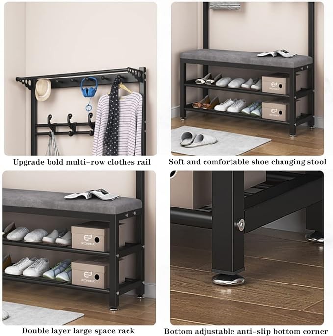 توفير المساحة: بفضل تصميمه الذكي، يعمل رف المعاطف على استغلال المساحة بشكل فعال، مما يتيح لك الحصول على مزيد من المساحة الخالية في المدخل للاستخدامات الأخرى.