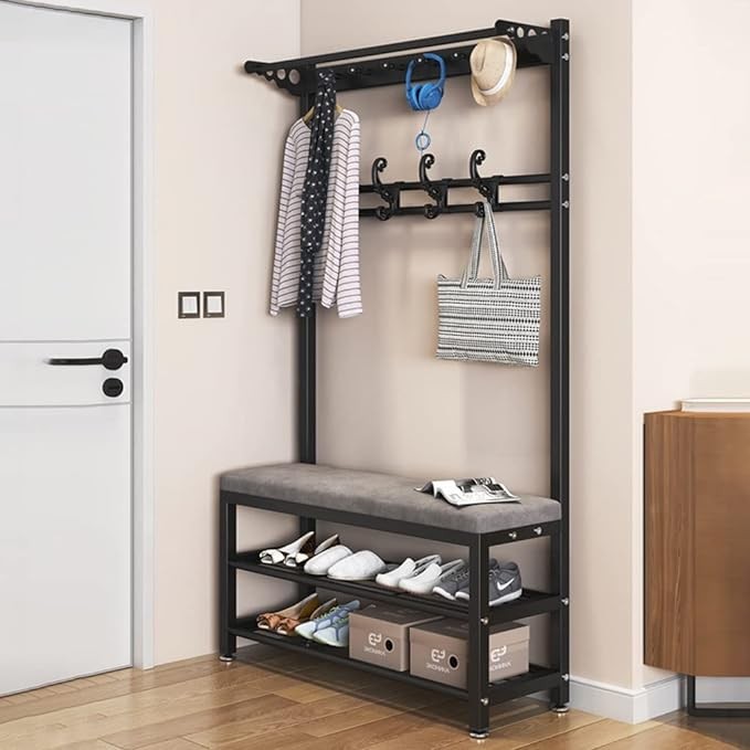 تنظيم مثالي: يوفر رف المعاطف للمدخل مساحة تنظيمية مثالية لتعليق المعاطف والأوشحة والقبعات، مما يساعد على الحفاظ على المدخل منظمًا ومرتبًا.