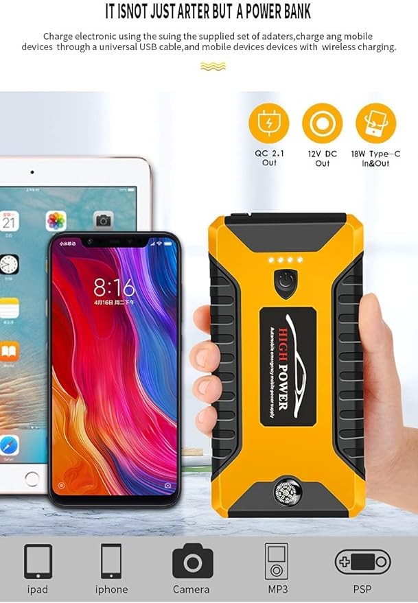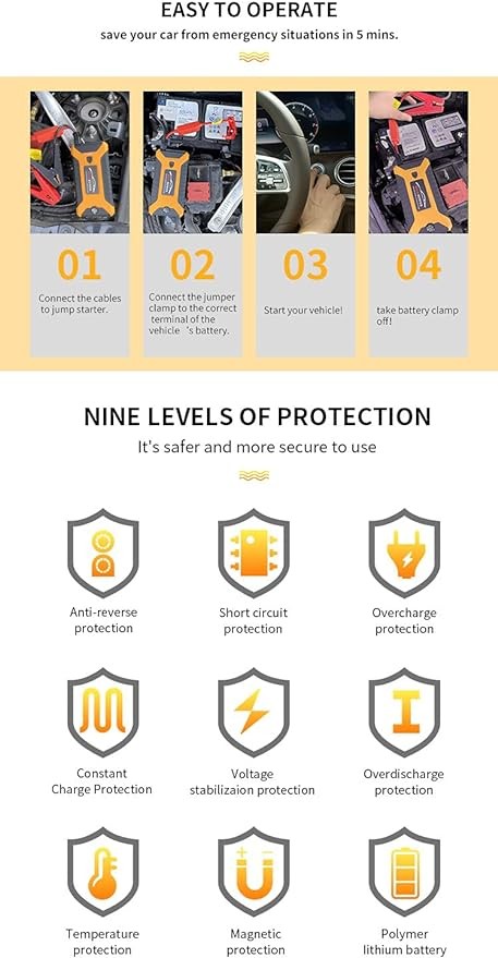 ★ ما ستحصل عليه، بما في ذلك: جهاز تشغيل القفز، ومشبك التوصيل، وكابل USB 4 في 1، وشاحن السيارة، وشاحن المنزل، وصندوق الأدوات، ودليل التعليمات (اللغة الإنجليزية غير مضمونة).