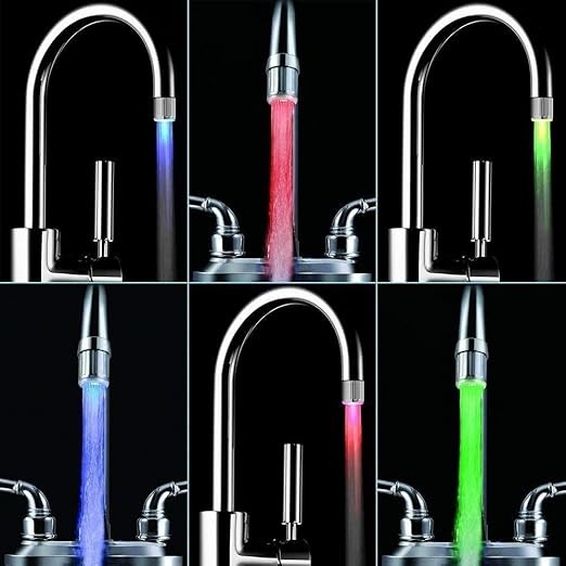 ★ يتم عرض 7 ألوان مختلطة تلقائيًا عند تدفق المياه. قم بتغيير لون واحد تلقائيًا كل 2 إلى 5 ثوانٍ. لا حاجة لبطاريات، ولا حاجة لأسلاك. سوف يضيء ضوء LED عند فتح الصنبور.