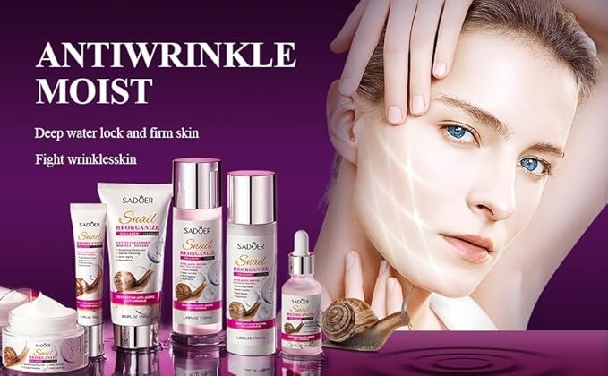【مجموعة العناية بالبشرة بالحلزون تتضمن 1 × تونر الحلزون، 1 × كريم الوجه الحلزون، 1 × وجه الحلزون، 1 × منظف الحلزون، 1 × قناع الوجه الحلزون، 1 × كريم العين الحلزون، يحتوي كل منتج على مرشح إفراز الحلزون، المعروف بخصائصه الاستثنائية. خصائص الترطيب. يتغلغل هذا المكون القوي بعمق في البشرة، ويجدد الرطوبة، ويترك بشرتك ناعمة وملساء ومشرقة.