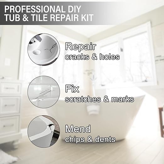 طقم إصلاح البلاط: طقم إصلاح حوض الاستحمام هذا مناسب لأي عائلة. يتناسب طلاء البلاط بشكل مثالي مع بلاط السيراميك أو حوض الاستحمام أو الأرضيات أو الجدران، وهو مناسب للمناطق الرطبة.